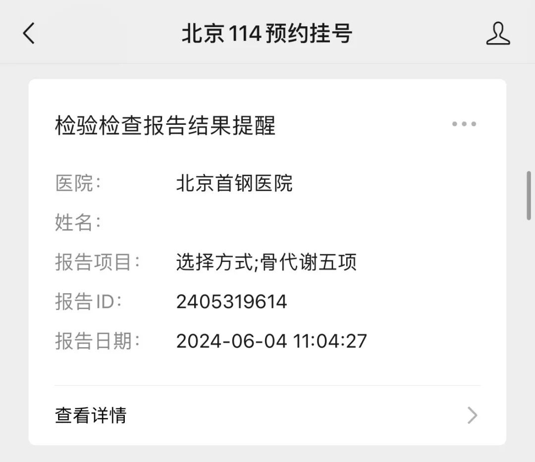 A:关注“北京114预约挂号”公众号,绑定个人信息后,绑定的就诊人报告会主动推到微信里~